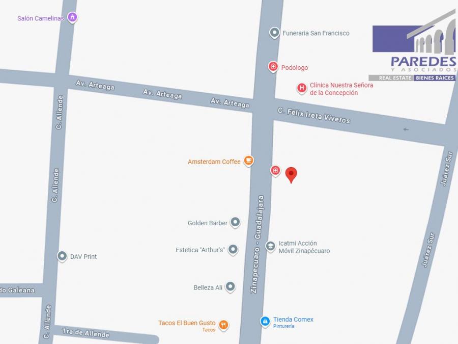 T516 Terreno en Venta 850 m2 zona centro de Zinapecuaro